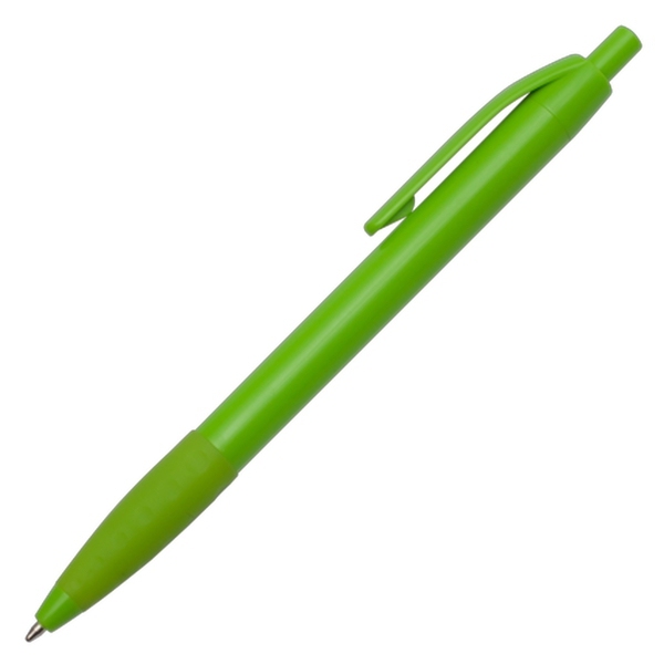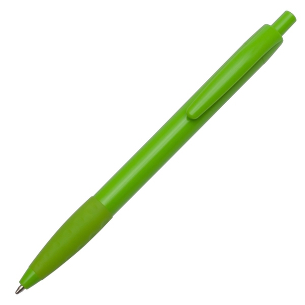 Plastikowy długopis promocyjny. Wyposażony w niebieski wkład.